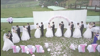 5月21日,微博传出成都一高校43人的班级,出现了15对情侣,毕业之际在重庆一景区集体举办婚礼,8对还领取了结婚证。这一"新闻"在随后数天成为全国各大媒体和微博用户关注的焦点,公众的惊讶、祝福、调侃以及对婚姻的讨论,一度将这场特别的婚礼推向了微博热搜榜单。