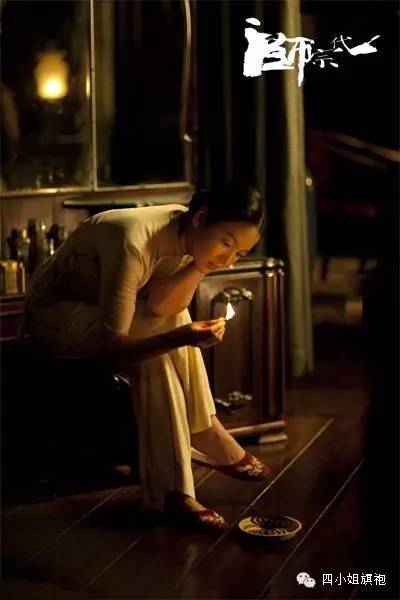相较《2046》里章子怡曲线毕露的旗袍和《爱神》中巩俐镂空半透明旗袍造型,《一代宗师》对旗袍的还原显然更忠实于实际时代背景,强调的是情调,而非情欲。无论是章子怡穿着黑色旗袍端坐于青楼女子之中的画面,还是宋慧乔深夜挑灯的旗袍家居款,人物造型本身不再突出,而是融化于整个背景和情境之中。这种造风格型让《一代宗师》的旗袍演绎,更接近回归2000年《花样年华》的服饰意向。