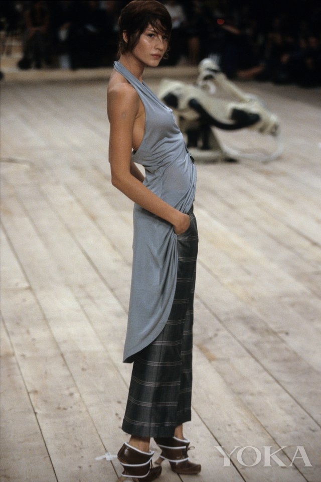 Gisele Bündchen Dolce & Gabbana 2003春夏系列 1、永远的T台上"G神" 邦辰从1996年开始走秀,在1997年的Alexander McQueen 1998春夏系列上,她以一套近乎透视的造型登场,成为当年时装周上最受瞩目的选手。