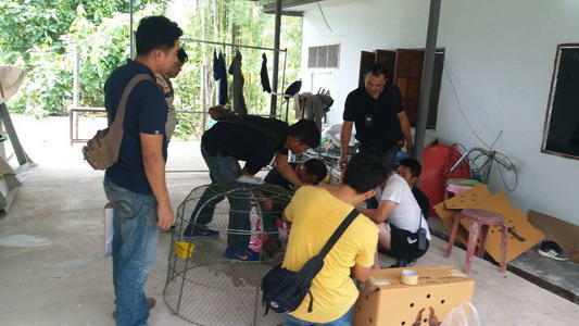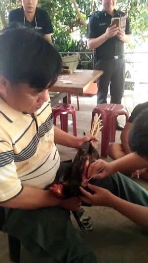 泰国清迈,一名毒贩日前被警方发现手持的两个盒子内藏有两只鸡,形迹可疑。