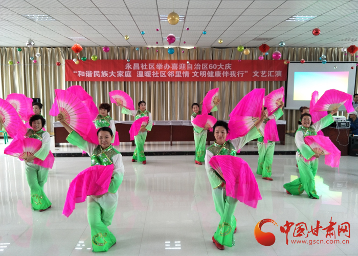 16日中午,吴忠市胜利镇永昌社区歌声嘹亮,舞步矫健,居民正聚集在社区开展文化活动。2018第十四届全国网路媒体宁夏行北线记者团在社区见证了当地居民美好的生活场景,并了解了社区建设的情况。