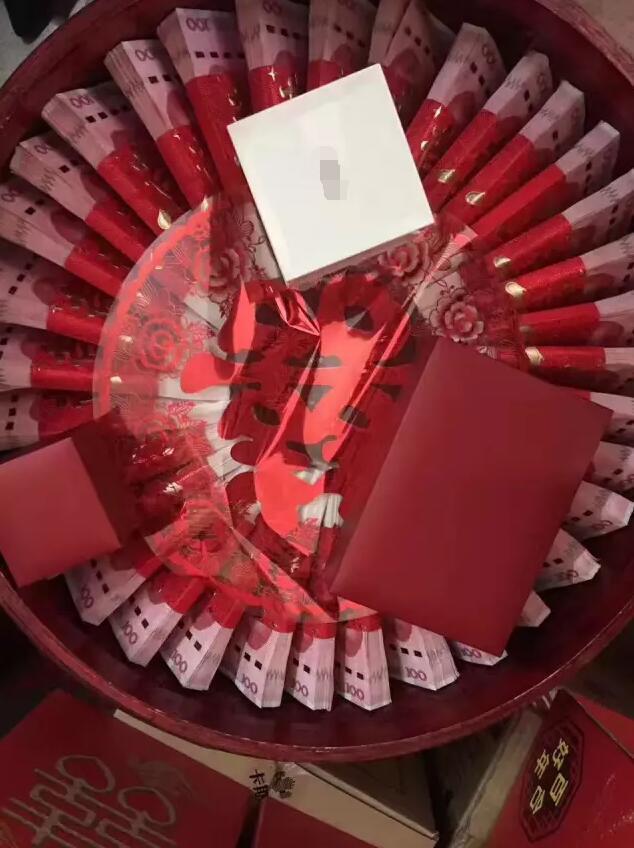 前一晚的求婚成功了,男孩次日迫不及待得带着钻戒和68万的百元大钞,挑着12担订婚担子去女方家提亲订婚了。