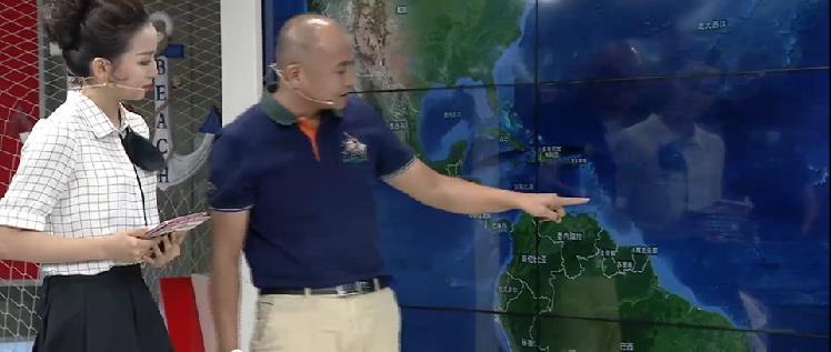 孙海滨在演播室讲述不同的横跨大西洋路线