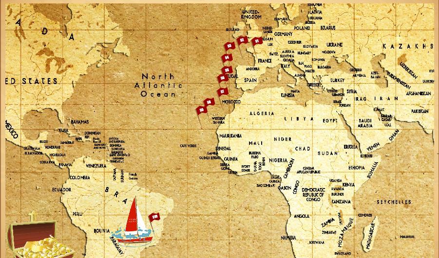 由此看来郭川船长的帆船就是借助洋流的作用,依靠海水的流动使帆船驶向巴西的。