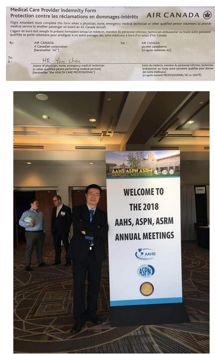 近日,武汉四医院手外科医生陈焱结束美国访问学习后,乘坐飞机返回国内。航班经过白令海峡时,一名华侨乘客突然浑身颤抖、呕吐,他第一时间伸出援手。