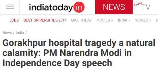 印度总理莫迪在印度独立日的讲话中,将日前一家公立医院因“断氧”而导致近70儿童死亡的惨剧称作“自然灾害”。