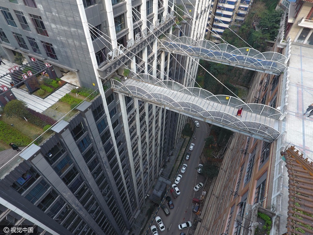 重庆现68.5米超高天桥 横跨两座大楼_北京时间