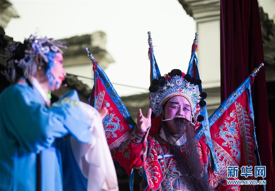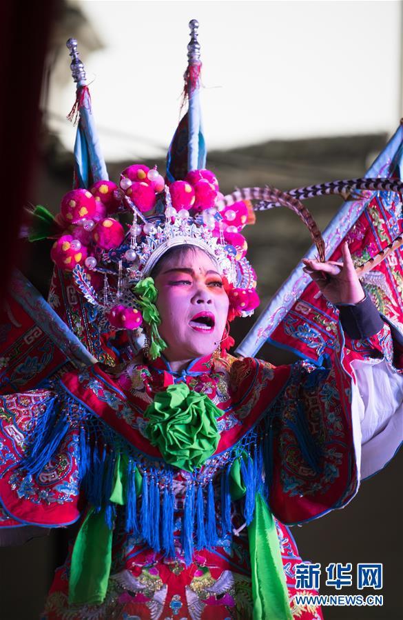 2月19日,村民在浙江省诸暨市东河乡十里坪村文化礼堂观看西路乱弹表演。新春时节,在浙江省诸暨市东河乡十里坪村活跃的西路乱弹艺术团为村民献上表演。