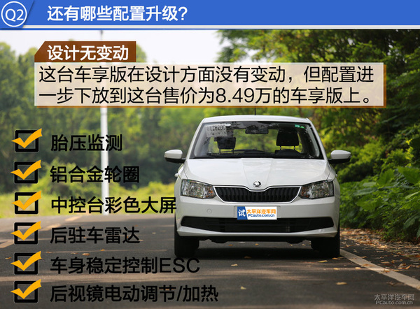 斯柯达晶锐车享版是今年4月底推出的新车型,这个车型虽然在外观上没有做太大的改进,仅是在轮毂方面从14英寸的钢制轮毂提升为15英寸的铝合金轮毂以及车身同色外后视镜罩壳,另外还添加了一个看不到的XDS动态电子差速锁功能,面子方面提升了不少。