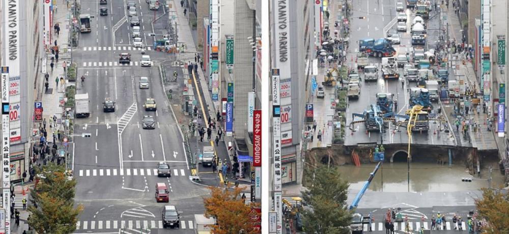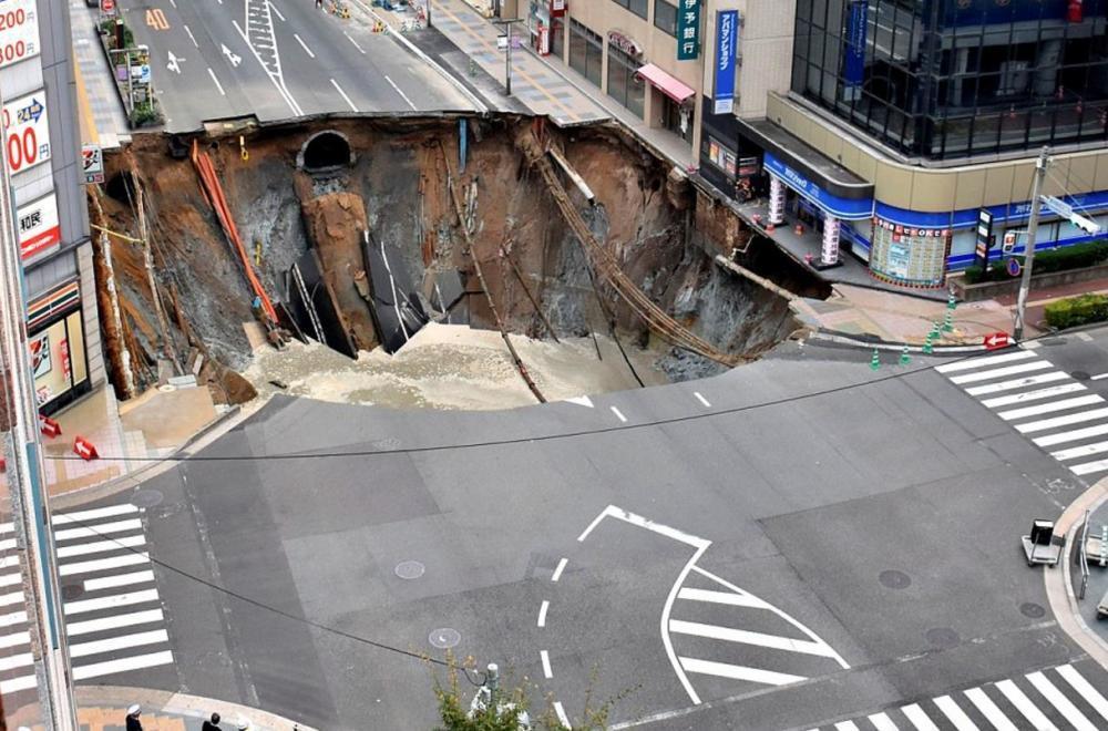 日本福冈市路面陷坑首次出现的时间是在11月8日,直径约30米、深约15米的“天坑”造成了城市大面积断电和交通拥堵,引发国际媒体关注。据介绍,当时的路面塌陷是修建地铁失误引起的。