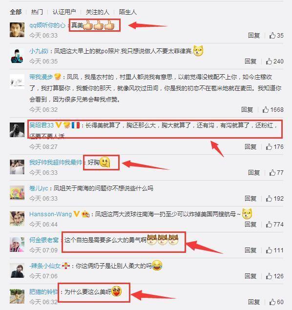 前几天凤姐的微博还晒了几张自拍照,并且自称粉红女郎,大秀事业线呐!这沟真够深的,但是凤姐还是招来一大波网友的留言。。