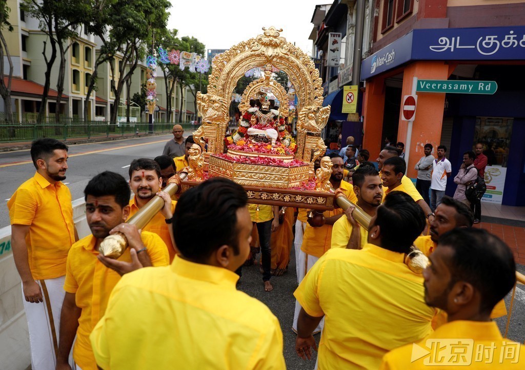 当地时间2017年2月9日,新加坡,印度教信徒庆祝大宝森节。