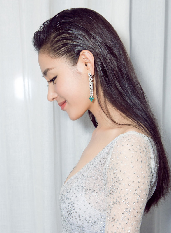 看似简单的中分直发,但分线处做了Z型处理,使发型不再沉闷。侧分的长刘海不但修饰了脸型,更让颖宝有一股潇洒的帅气。