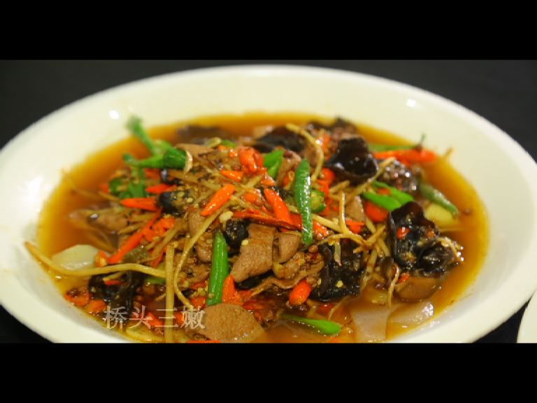 桥头三嫩,可是四川自贡地区的一道名菜,三嫩分别是用猪肝、黄喉、腰花做成的小炒,这三道菜,以食材嫩、出锅快著称!麻在前辣在后,特别要说明的是这个黄喉,吃起来是特别地爽脆!