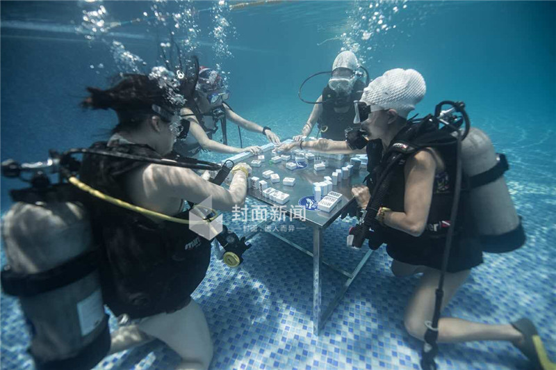 封面新闻讯(记者张元玲)炎炎夏日,该如何避暑?7月16日至17日,重庆一帮资深麻友潜水打起了麻将。