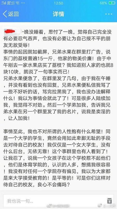 学校对此事高度重视,已经责成保卫处、学生处和相关学院于昨天中午开展调查。该女生已正式向地方派出所报案。
