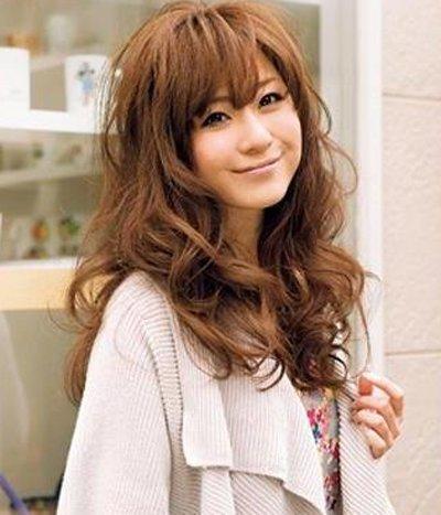 这款齐刘海的长卷发很有韩范的味道,闪动着流线美感的长卷发增加甜美感,齐刘海完美修颜,呈现精致小圆脸,看起来可爱又淑女,比较适合校园中的美眉啦。