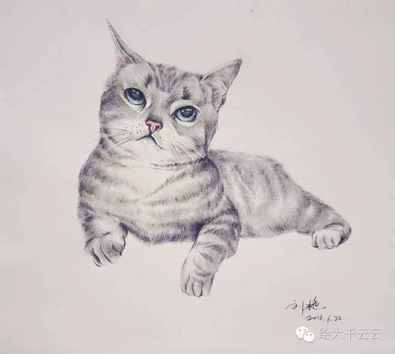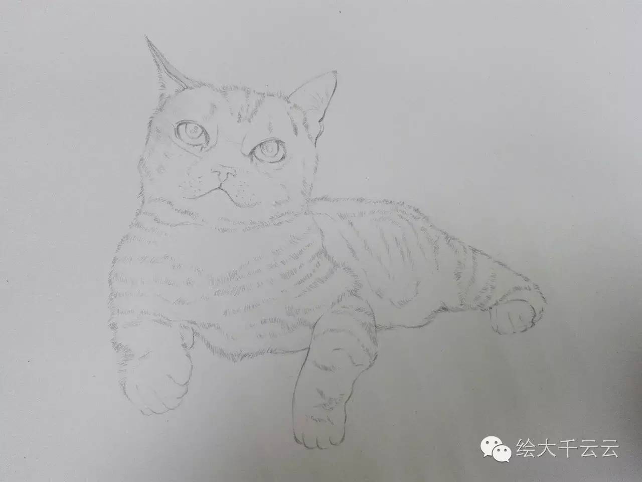 要点:准确刻画猫的形体特征,可先定出主要位置点再进行勾画。