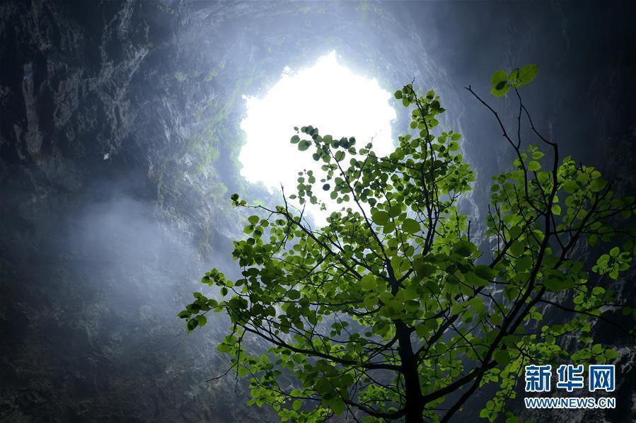 5月25日,湖北省宣恩县锣圈岩天坑底部的树木枝繁叶茂。地处鄂西山区的湖北省恩施土家族苗族自治州不仅地面风光旖旎,景色如画,当地独特的喀斯特地貌形成的天坑、溶洞等地下美景,构成了土苗山乡独特的“地下风景线”。位于恩施州宣恩县境内的锣圈岩天坑深达290余米,除绳降外无法进入,坑内保存着独立的生态系统,生机盎然;与之相邻、长达3公里的地下溶洞内钟乳石、石笋、溪流等自然景观千姿百态,神秘而秀丽。天坑、溶洞等美景相映成趣,成为当地发展生态旅游的新亮点。