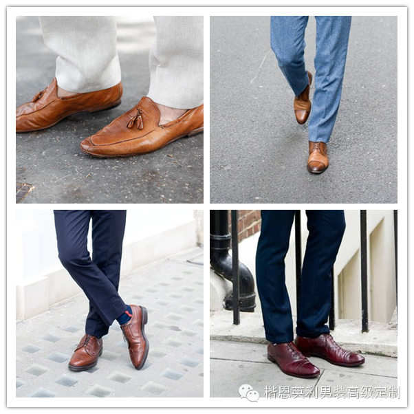 第一个想到的替换色彩应该是棕色系,这在职场鞋款中曝光率也是相当高的。棕色系比黑色看起来更亮,也更加温暖,接近于大地的质感,也能突出男士稳重的一面。棕色系包括棕黄、棕红、深棕等细类,也是百搭款。