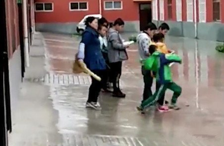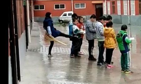 近日,有人称延安市某小学老师体罚学生,视频中约10名小学生因未完成作业被罚站在雨中,被老师踹屁股。