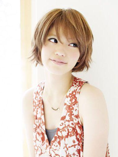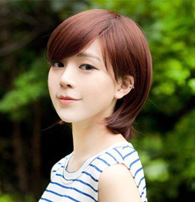 韩式的女生刘海波波头发型,用亚麻色渲染出时尚气息,大片整齐刘海修衬出精致小巧的脸型,整洁的碎短发设计给女生带来干净整洁的形象。