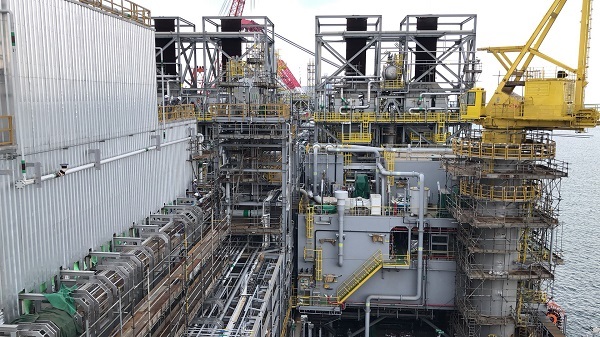 烈日当空,海风湿热,在中国海洋石油工程股份有限公司青岛公司的舾装码头上,600多名工人顶着高温正在进行FPSO集成吊装阶段其中一个模块的吊装,这项工作要持续进行五个月左右。