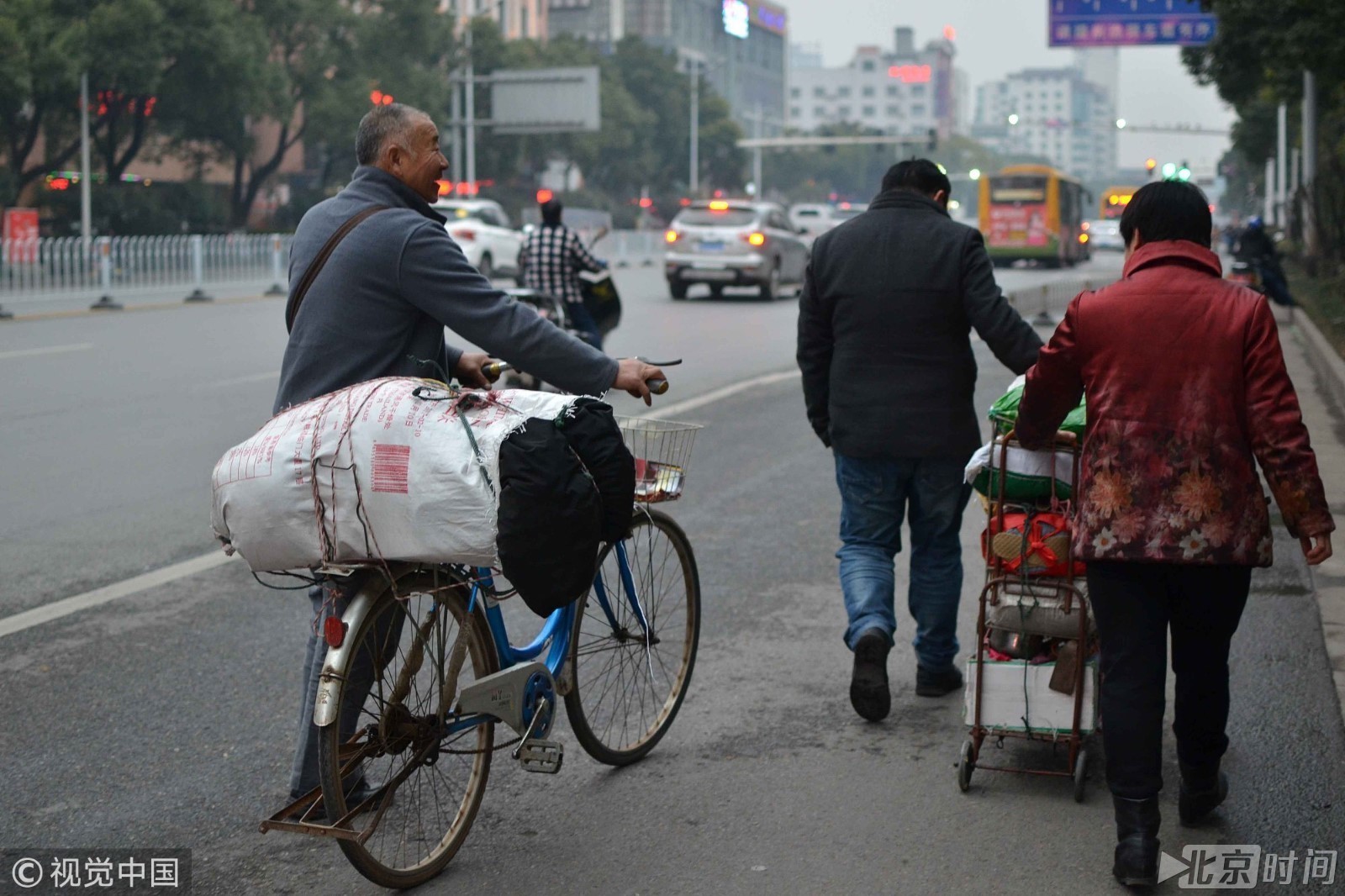 64岁的王大叔走出衡阳火车站,一身疲劳顿消。要知道老人跨两省,转三次车,耗了十多个小时,而且随身携带200多斤年货(家乡特产),只为与家人团聚过大年。