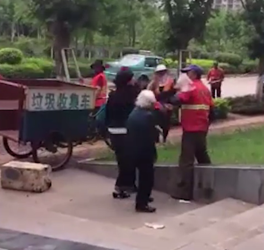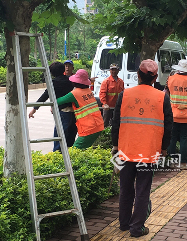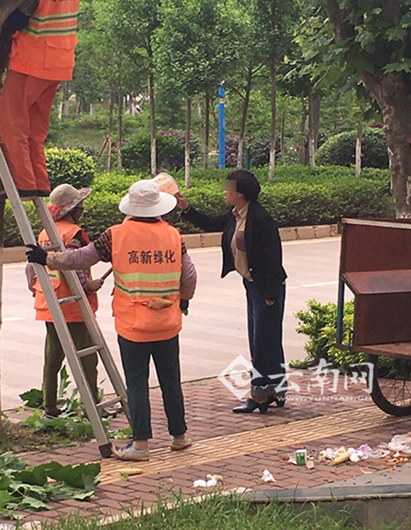 5月19日上午,云南昆明五华区昌源北路,一名黑衣女子将生活垃圾倒放在一辆路边停放但只用于拉绿化工具的车上。