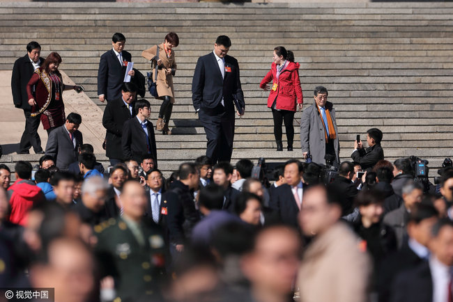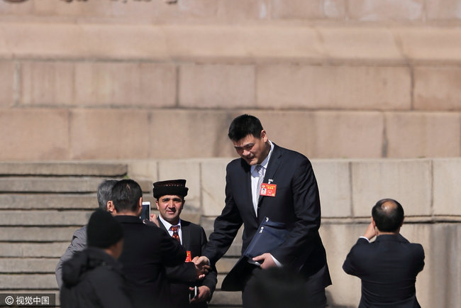 2017年3月13日,北京,全国政协十二届五次会议闭幕会在人民大会堂举行,政协委员姚明参加会议。