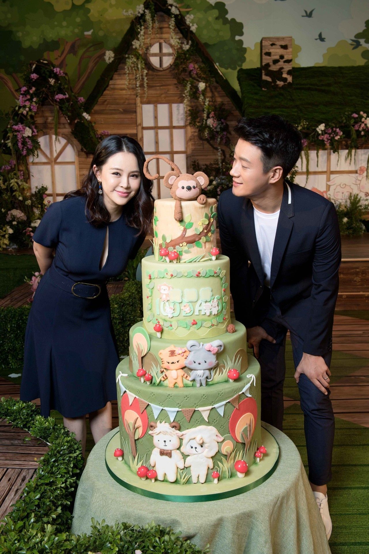 现场有大量花藤,让一家五口置身童话中的小森林,隐藏其中的卡通动物的装饰则是以一家人的生肖和趣事为灵感原型创作,意喻一家人永远相亲相爱。