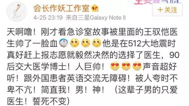而“舔完”电视剧里虚构的赵启平医生后,网友们又在《急诊室故事》里,发现了一个真实的骨科高颜值医生王驭恺。