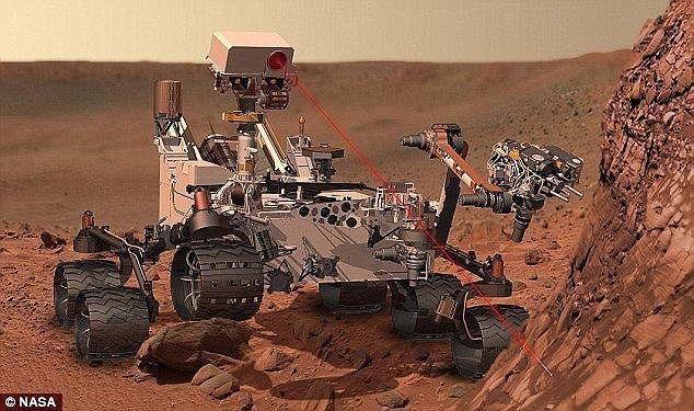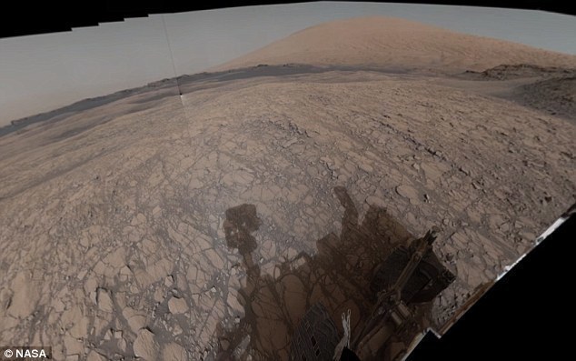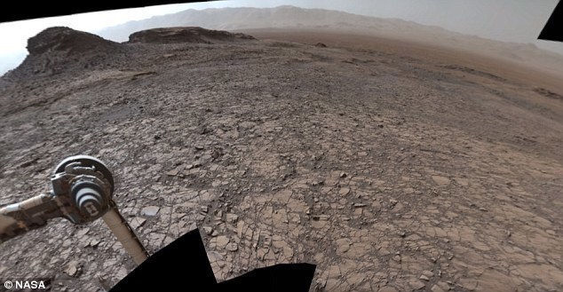 从画面中可以看到火星车周围荒芜的沙漠一般的景象,其中满是遭受侵蚀的平顶山和孤丘,给人的印象和地球上的一些荒漠地区惊人的相似。