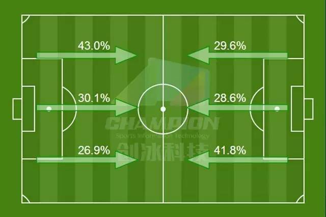 整个西班牙的进攻左倾幅度非常厉害,左路进攻比例达到了百分之40几,图5。