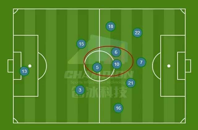 这是两场比赛球员的平均触球图,注意下,整个阵型图中变化比较大的就是10号法布雷加斯。上场比赛他位置更加靠后和固定,本场似乎博斯克一开场就有意让其前提。那么这样的变化带来了什么效果呢。图3、4。