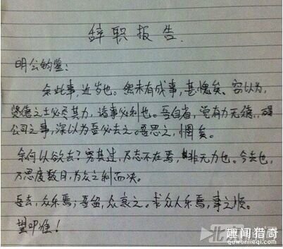 无锡市一名女护理师近日从一间医院辞职,并提出辞职信,不过,内容写道“尊敬的领导,本人因找不到对象等原因请辞,望批”。