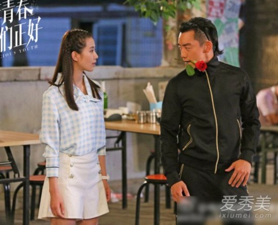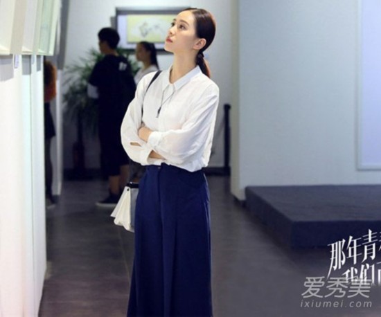 学生时代的校服look,明显借鉴了日本校服的风格,刘诗诗白衬衫+黑色短裙的水手服造型美美哒。