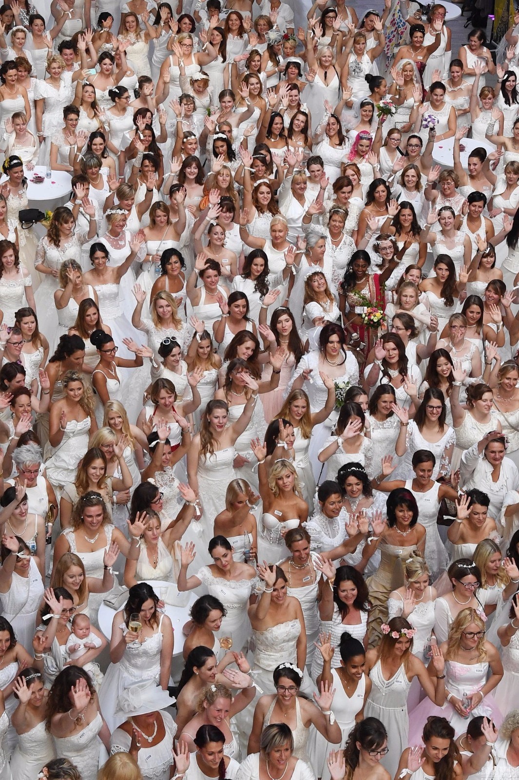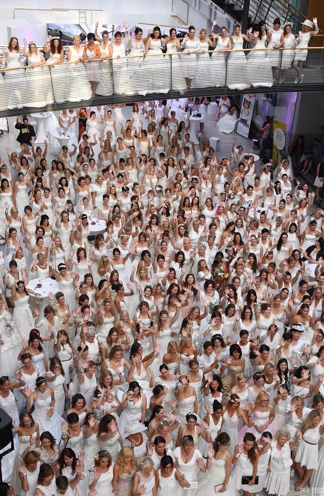 当地时间2017年7月28日,德国普福尔茨海姆,当地举办“1001新娘之夜”活动,来自德国至少909名身着婚纱的女性参加了这一活动已打破吉尼斯世界纪录。