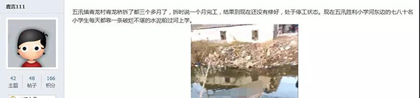 12月20日,滨海当地论坛曝出,由于村内的青龙桥拆除重建,该县五汛镇胜利小学部分家住青龙村的学生,需乘船过河上学。