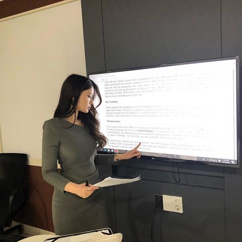 韩国首尔一名补习班英文老师金莎拉(Sarah Kim),因为平常喜爱穿紧身衣和窄裙上课,加上姣好身材吸引许多网友关注。