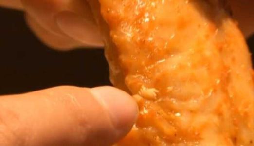 再仔细看那个快吃完的鸡翅,她发现上面密密麻麻地分布着白色米粒状物体,看起来和蛆虫非常像。