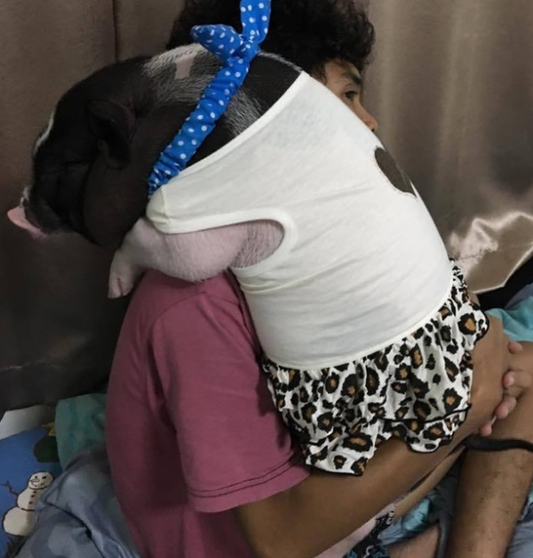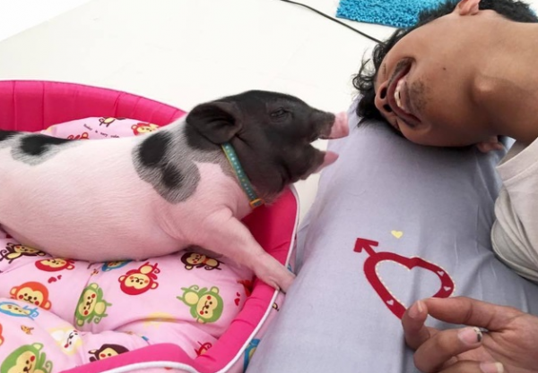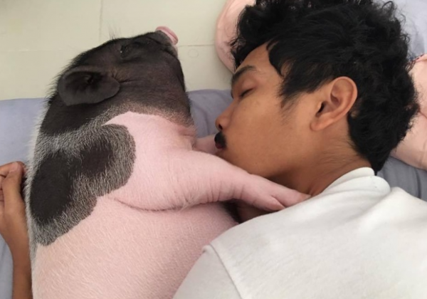 4月30日,一名泰国男子在Facebook上分享了他所养的“宠物猪”的照片,男主人已经养了它将近1年时间,并培养出了深厚的感情,天天都抱着它睡觉。