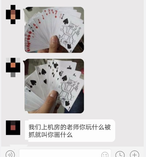 5月24日,有网友爆料:贵阳一学校学生上课时偷偷玩纸牌,被老师抓住后,逗逼的老师竟然让该学生画了一副纸牌!