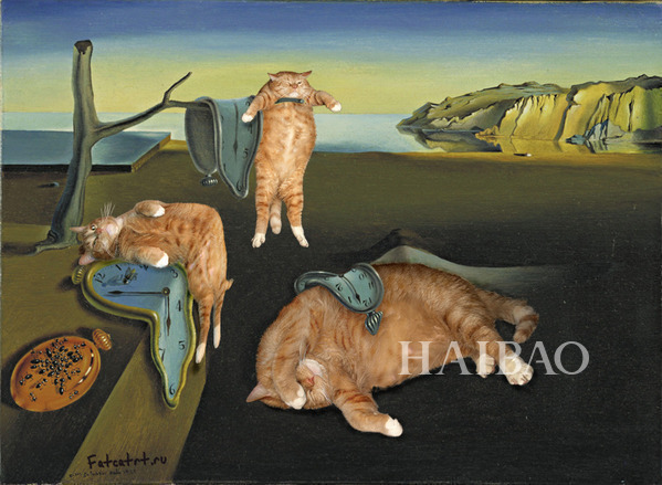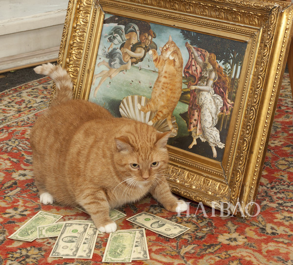 《蒙娜丽莎的微笑》、《记忆的永恒》、《拿破仑翻越阿尔卑斯山》都是大家非常熟悉的世界名画了,但是这些画中怎么出现了一只姜黄色的大肥猫!原来这些画都是这是肥猫的主人,俄罗斯艺术家斯维特兰娜·佩特洛娃 (Svetlana Petrova) 的作品。这只漂亮又憨态可掬的肥猫名叫Zarathustra,它曾经属于斯维特兰娜的母亲。斯维特兰娜在母亲去世后的一段时间里,心情抑郁低落,在朋友的鼓励下,她接手养起了母亲的爱猫Zarathustra,并发现它特别善于摆各种逗趣的姿势。于是她开始尝试把Zarathustra的照片和世界名画用电脑合成起来,并发布到自己的网站上。很快,这些好笑的作品就吸引了无数的网友的注意。
