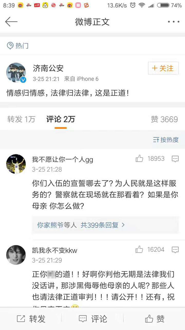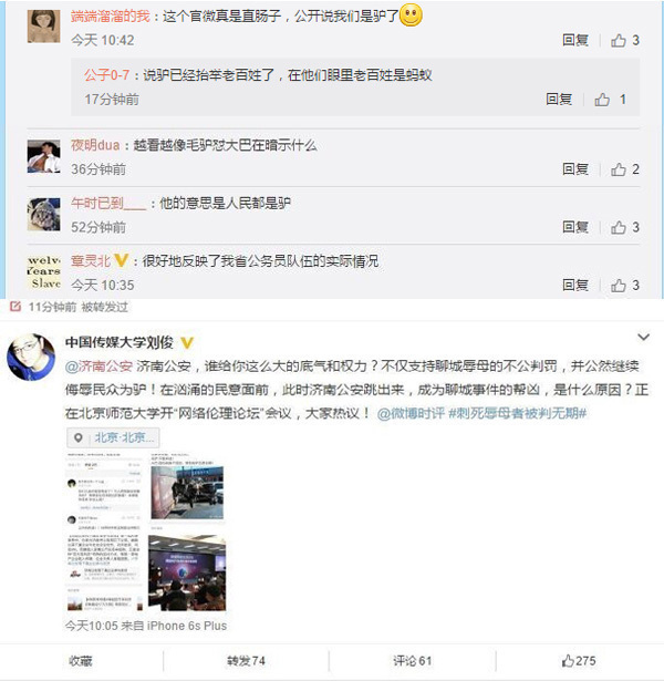 3月26日14点29分,记者联系到济南公安一相关工作人员,该工作人员称:这两条微博没有任何含义,不代表济南公安的任何观点。