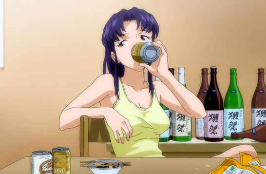 酒瓶的设计完全按照剧场版动画《新世纪福音战士 新剧场版》中的造型进行。在那个场景中,可以看见美里穿着小背心和运动短裤懒散地坐在椅子上喝着啤酒。