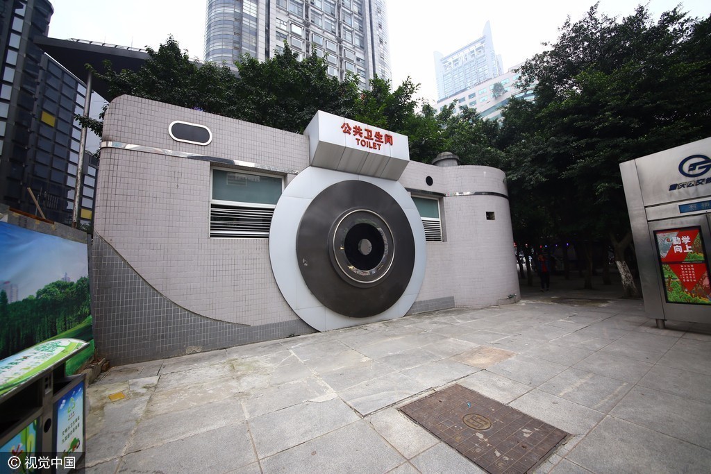 重庆石桥铺数码城路边,一座“照相机”造型的公厕令路人目瞪口呆。