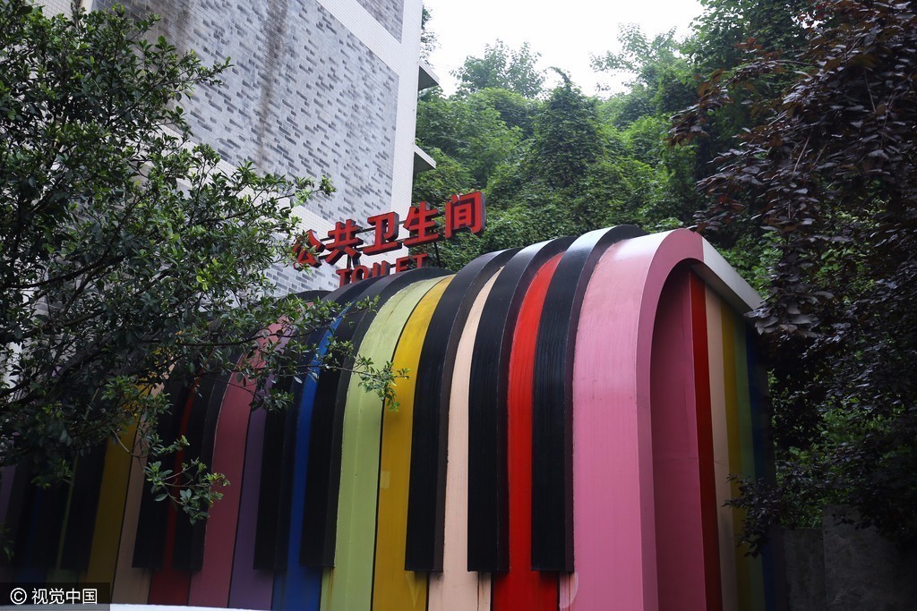 重庆一的公共卫生间外形奇特,好似被七彩琴键包裹,绚丽出彩,格外醒目,市民直呼:真想上去弹弹琴。