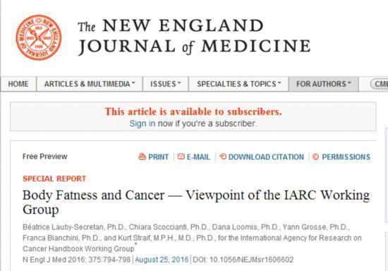 世界卫生组织下属的国际癌症研究机构 发布了他们针对癌症和体重研究的最新结果,新确认了8种与肥胖相关的癌症。