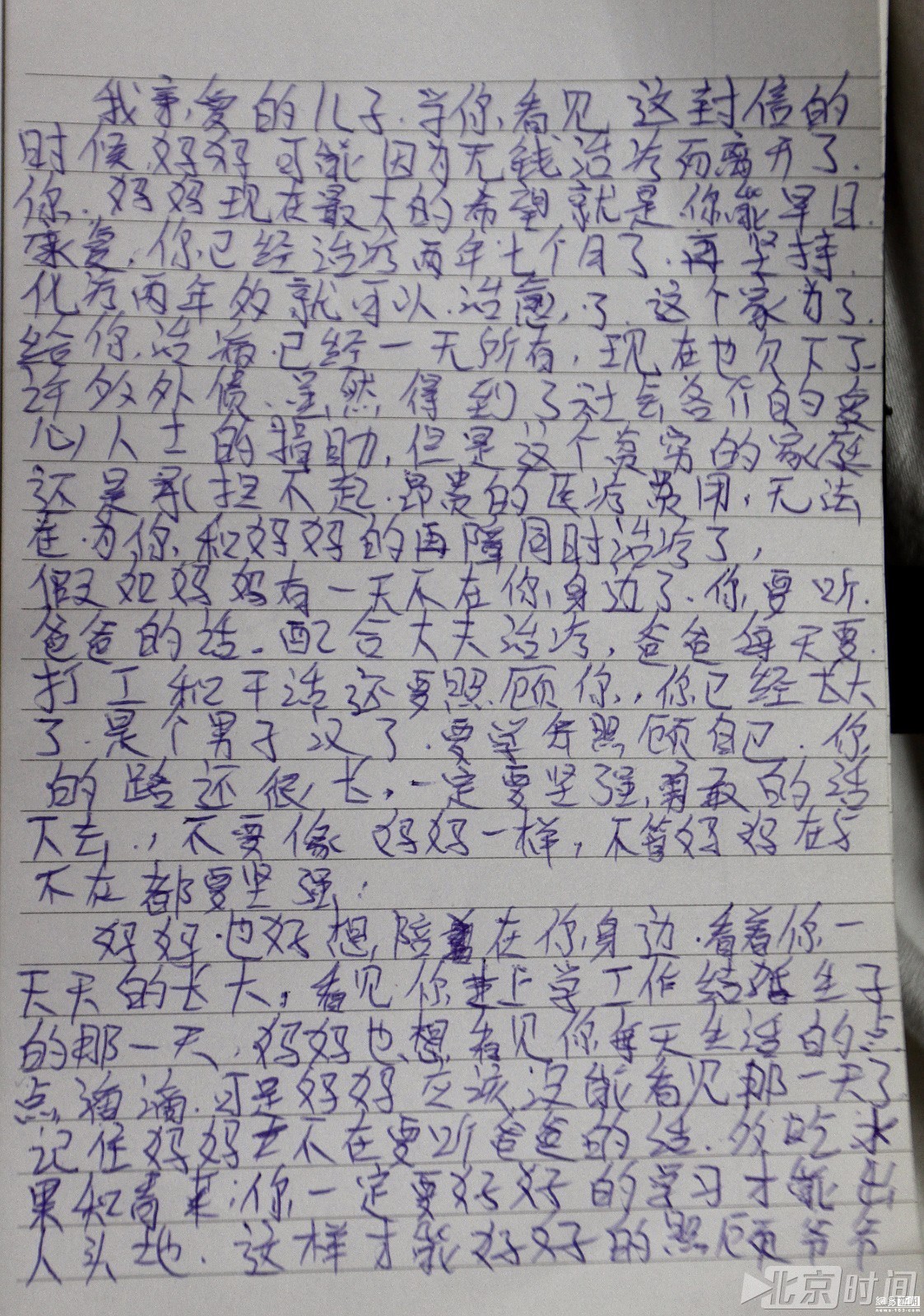 2017年12月6日,黑龙江绥化,“我亲爱的儿子,当你看见这封信的时候,妈妈可能因为无钱治疗而离开了你……”这是28岁的年轻妈妈孟祥兰留给儿子的信。